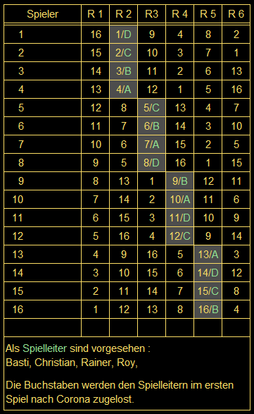 Kniffel-Turnier hinterher. Die restlichen Spiele im Bollman's Cup