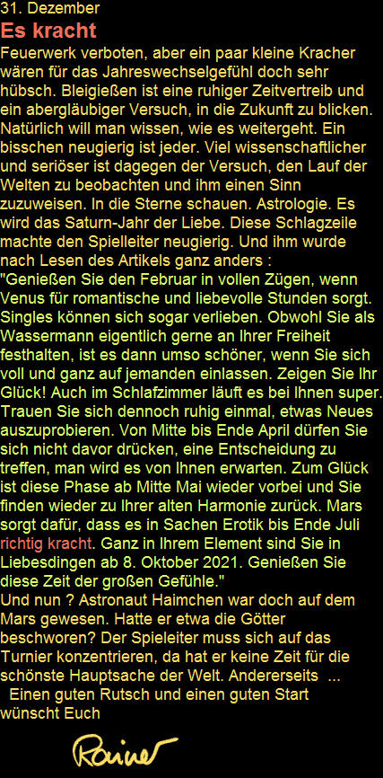 folgen. Für Astronaut Haimchen und seine außerirdischen Freunde. Der